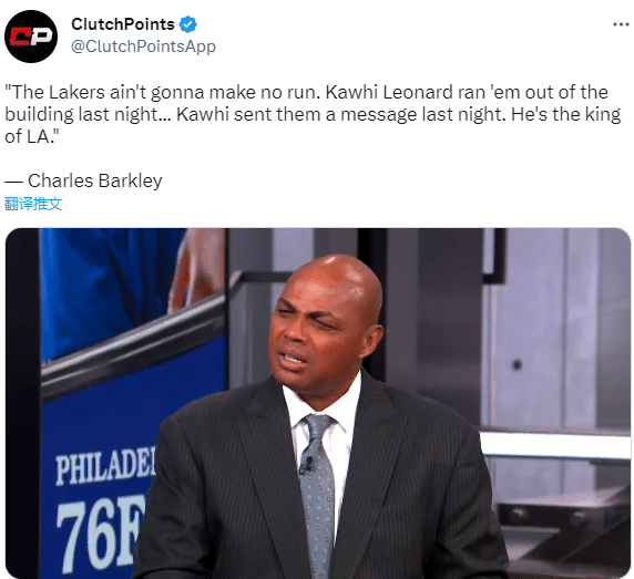 今日巴克利在节目中嘲讽湖人被打跑了,狂赞小卡才是洛杉矶之王。