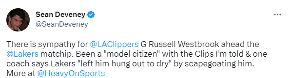 据美记者报道,威少加盟后,在快船队内得到了很好的评价,他真的是一位模范球员。威少很乐于帮助年轻球员,在更衣室内的作用也很出色,快船队内的每个人都喜欢他。他本人在这里过得也很舒服,而且正在转化为优秀的场上表现。