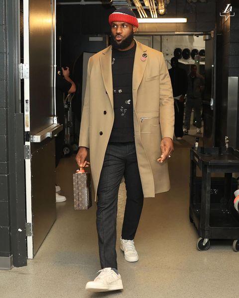 湖人又迎来关键卡位战,詹姆斯和浓眉早早带队来到森林狼主场进行热身训练,赛前入场时,詹姆斯身穿卡其色风衣、戴着针织帽走进球馆。