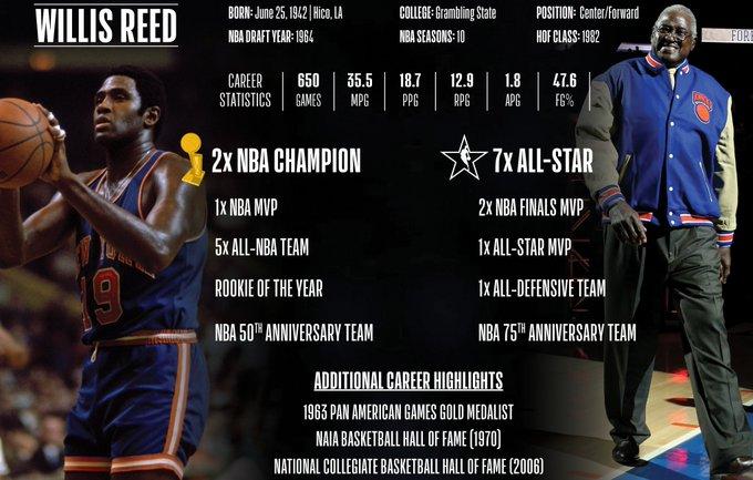 1974年4月21日,31岁的威利斯-里德因伤宣布退役。在效力尼克斯队的10年中,里德的各项技术统计都列全队前10,尼克斯队在1976年10月21日为他的19号球衣举行了退役仪式。