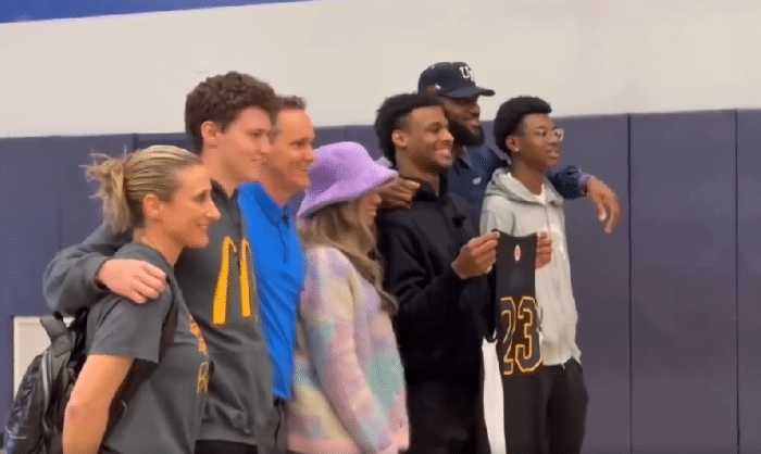 詹姆斯、萨瓦娜和布莱斯都来到现场并且合影,老詹十分开心,接受采访时表示为布朗尼感到骄傲;詹姆斯还更新社交媒体,配文写道:孩子,你太棒了。