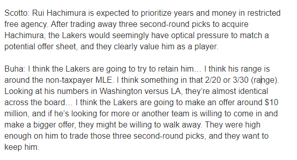 据报道,湖人把拉塞尔视作球队未来的控卫人选、首席控球手以及队内詹姆斯和浓眉后的第三球星;湖人非常有兴趣续约拉塞尔且双方都有意达成续约。