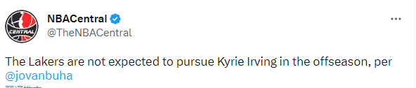 湖人记者Jovan Buha爆料,据我所知,湖人今年休赛期不会追求欧文了。我认为湖人已经错过了得到欧文的机会。你永远不能说得太绝对,事情可能会有变数。但目前为止,湖人休赛期的计划是保留现有阵容。