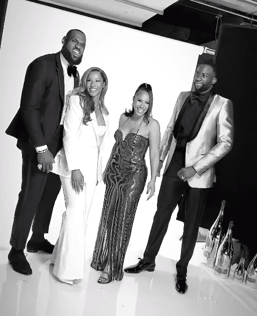 NBA众星参加奥斯卡派对:两家合影詹皇吐舌抢镜 威少现身并拥抱詹嫂