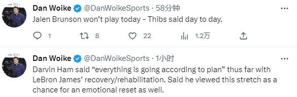 今日对阵尼克斯,浓眉继续出战,湖人首发五虎是浓眉、小布朗、范德比尔特、比斯利和拉塞尔,湖人延续上一场击败猛龙的首发阵容;尼克斯首发五虎是兰德尔、巴雷特、米罗、格雷姆斯和奎克利,布伦森因伤继续休战,进入球队每日伤病名单。