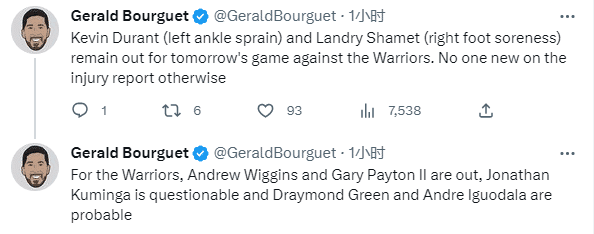 布克保罗率队挑战勇士:两队伤情出炉 杜兰特因伤无缘大战库里