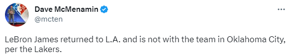 詹姆斯暂时离开球队:因伤提前返回洛杉矶 此前穿保护靴观战仍输