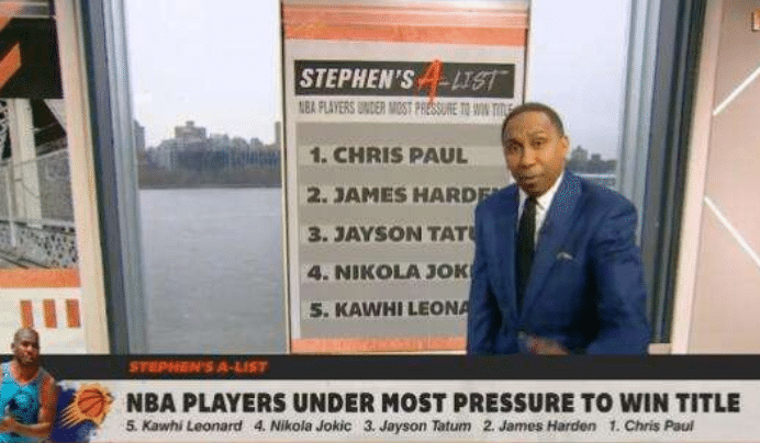 来源:24直播网02-24 18:3524直播网讯02月24日,NBA现役球员之中谁的夺冠压力最大?美名嘴斯蒂芬-A-史密斯在节目中,列出了他心目中夺冠压力最大的球员,在这份名单的球员有:克里斯-保罗、詹姆斯-哈登、杰森-塔特姆、尼古拉-约基奇和科怀-莱昂纳德。
