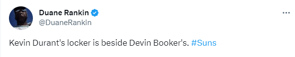 据太阳记者Duane Rankin报道,在太阳更衣室中,杜兰特的更衣柜就在布克的旁边。