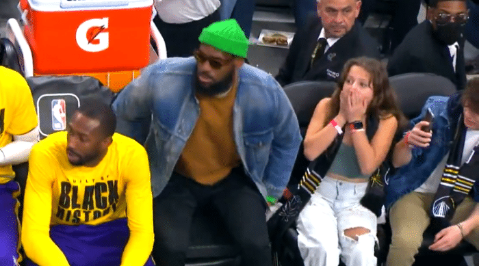 关键时刻,浓眉大帽汤普森,之后浓眉撞倒格林并把球打进,裁判吹罚太晚,老詹无奈苦笑;随后浓眉大帽迪温琴佐,最终湖人客场拿下比赛。