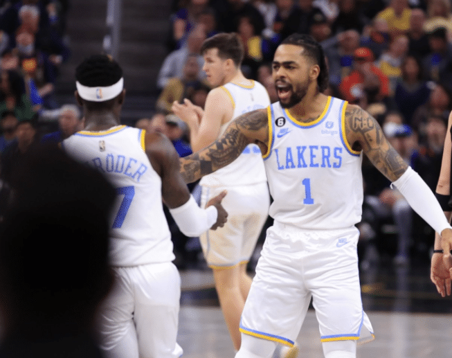 到了第二节,湖人被勇士拉开分差,施罗德和八村垒连续命中三分,扛起湖人进攻打球,另外浓眉终于开张得分,半场打完湖人落后勇士2分。