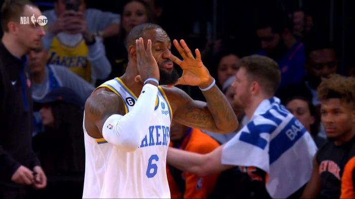 值得一提的是,詹姆斯防守巴雷特切球时被吹犯规,当时詹姆斯做出难以置信的夸张表情。