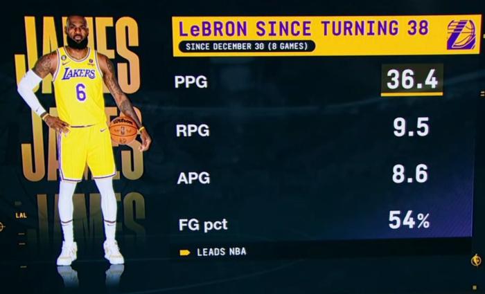 自从38岁生日后,究竟詹姆斯的表现有多疯狂?据统计,自从詹姆斯38岁后,他打了8场比赛(不算今天的比赛),场均能够砍下36.4分9.5篮板8.6助攻,投篮命中率5高达4%。期间老詹带领湖人取得了5胜3负的战绩。
