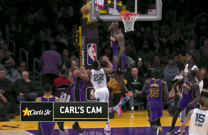 38岁詹皇再现招牌封盖:钉板大帽脑袋险撞到篮板 一成就比肩两大传奇