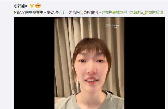 韩旭为篮网的球员们拉票,称大家肯定都知道自己会为谁投票,现在布鲁克林的两大球星欧文和杜兰特都在榜单上领跑,一起为他们打Call,送他们去全明星吧。韩旭此前在纽约自由人队,他们和篮网都是蔡崇信的球队,杜兰特等人都多次观看纽约自由人队的比赛,关系很好。