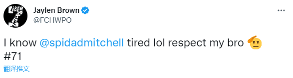 杰伦-布朗表示:我知道米切尔累了,兄弟,向你致敬#71分