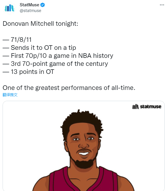 赛后骑士官方晒米切尔71分神迹,直呼:太神奇了!