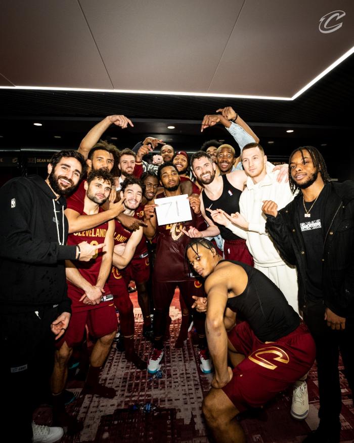 骑士更衣室狂欢曝光:米切尔大笑手持71分 C位合影创历史第一纪录