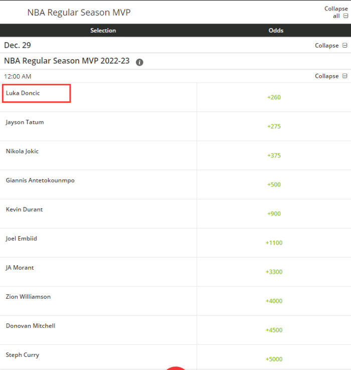 最新MVP赔率出炉:东契奇反超塔图姆升到第1 杜兰特第5库里垫底