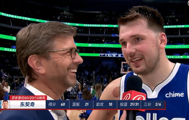 而在加时赛,东契奇也将个人本场比赛的数据锁定在了60分21篮板10助攻。在NBA,能够打出50+20+10三双的只有张伯伦和贝勒。而砍下60+20+10三双的,只有东契奇1人,他这一晚创下了疯狂的历史纪录,同时也为球队带来了一场难以置信的胜利。