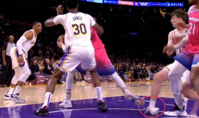 湖人又伤一人:里夫斯脚踝90度崴伤 表情痛苦一瘸一拐返回更衣室