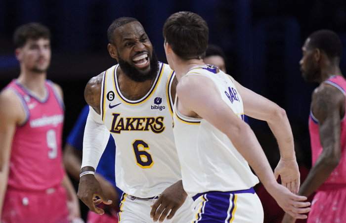 末节,奇才7-0领先到8分,詹姆斯强硬2+1,外线轰进撤步三分,带领湖人11-0夺回领先;两队比分交替上升,托布轰进三分,詹姆斯不讲理2+1,比尔两罚全中,托布再中三分;关键时刻,老詹突破撞开波尔津吉斯后上篮得分,里夫斯关键时刻连续两次抛投,老詹关键一击杀到禁区暴扣,制胜助攻终结比赛,最终湖人赢球笑到最后。
