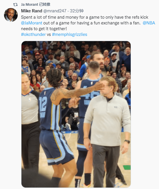 联盟花了大量的时间和金钱进行了比赛,只因为与球迷交流就把莫兰特驱逐离场,NBA真该管管了。