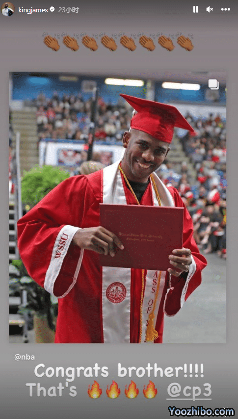 此前37岁的保罗身穿学士服并且戴着学士帽,正式毕业成为一名大学生,获得大众传播学士学位;詹姆斯恭喜保罗正式大学毕业。