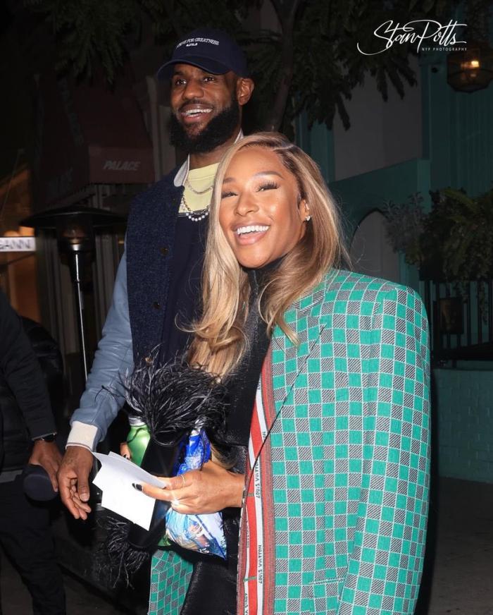詹姆斯携妻参加生日晚宴:老詹夫妇开怀大笑 萨瓦娜钻戒闪闪发光