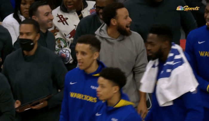 迪温琴佐开场三分4中4打停76人,暂停期间,科尔对迪温琴佐说:“欢迎回家呀宝贝!有了你谁还要斯蒂芬-库里呀(Who needs Steph Curry?)。