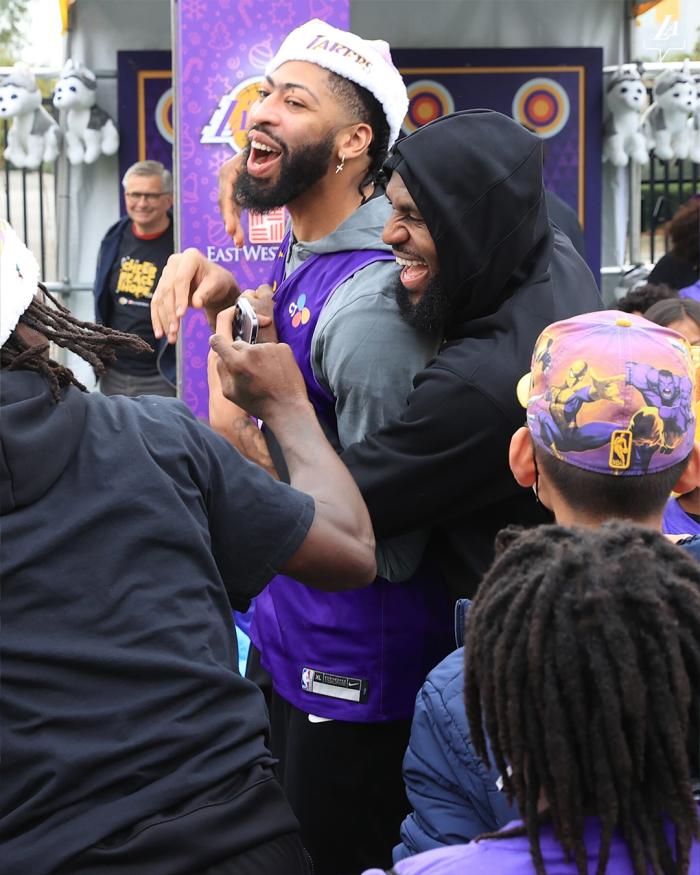 湖人举办圣诞活动:詹姆斯抱着浓眉开怀大笑 全队参加现场氛围太欢快
