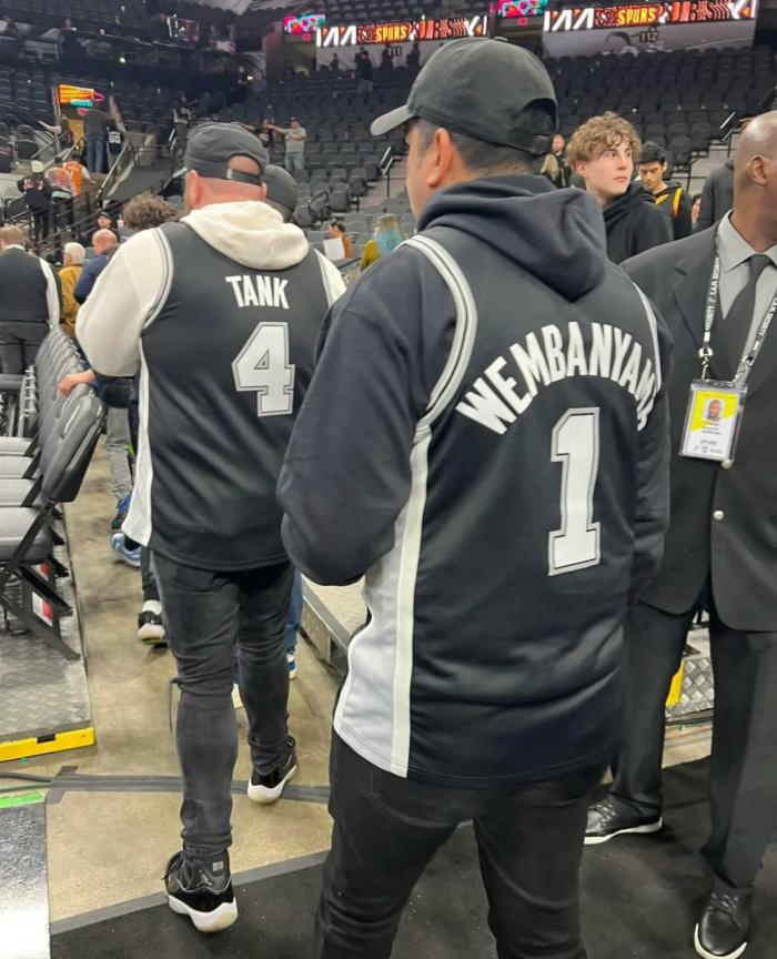 文班亚马是明年NBA选秀状元最大热门,马刺球迷十分期待他能加盟圣安东尼奥,今天马刺对阵火箭赛前,有马刺球迷身穿印有“文班亚马1号”字样的球迷。