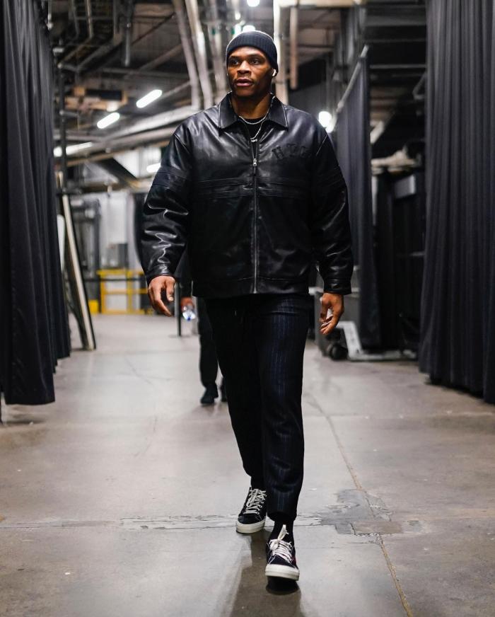 今天威少身穿戴着黑色针织帽、穿着黑色皮夹克,帅气入场,不过威少彻底沦为替补,即使詹姆斯、浓眉和贝弗利都不打,威少仍旧替补;赛季至今,威少仅仅在赛季初首发打了3场比赛,之后连续20场替补出战;威少年薪4706万美元,湖人队内第一,早已成为联盟最贵替补。