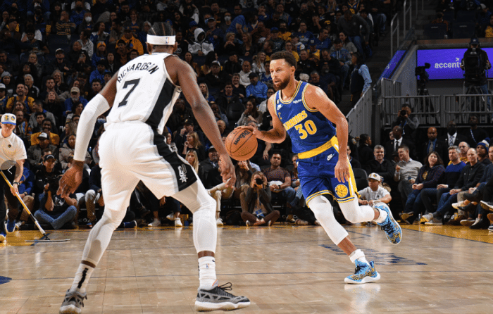 末节,勇士领先马刺40分以上,比赛早早沦为垃圾时间,库里不在上场,坐在场边和别人闲聊以及抠指甲;本场比赛过后,库里场均得分下滑到31.46分,场均得分从联盟第二掉到第六,暂时被恩比德、塔图姆、米切尔和亚历山大反超。