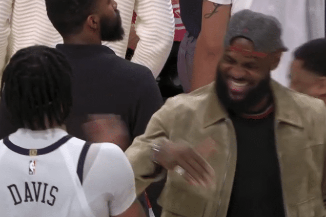 浓眉下场后和詹姆斯击掌庆祝,詹眉两大巨头都咧嘴大笑十分开心,湖人终于又赢了;赛后詹姆斯依旧笑容满面,笑着拥抱前队友大莫里斯。