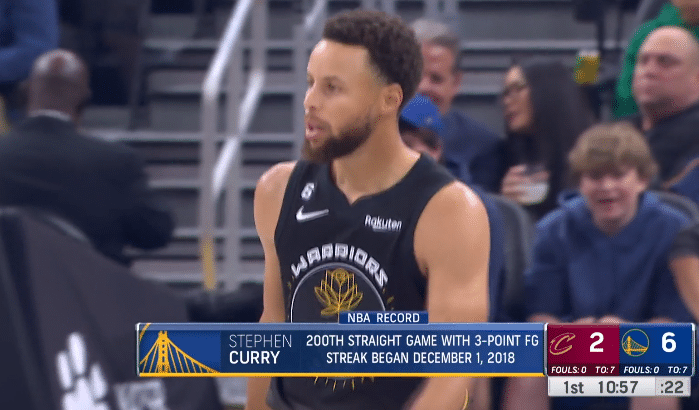 来源:24直播网11-12 16:0624直播网11月12日,NBA常规赛勇士击败骑士,库里全场出战34分钟23投15中、三分11中6拿到40分4篮板5助攻,末节库里坐场边扭动大笑,最后78秒连得10分统治比赛,疯狂庆祝点燃球馆,全场高呼MVP;库里又迎来里程碑时刻,常规赛连续200场投进三分继续刷新历史第一纪录。