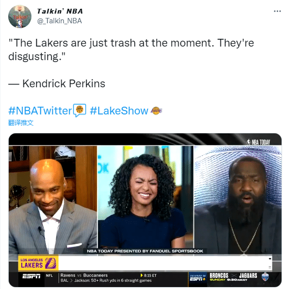 湖人伤病满营、进攻糟糕而且习惯性第三节崩盘,就像是上赛季糟糕战绩的延续,不过新赛季的湖人更令人失望;名嘴帕金斯在节目中表示:现在的湖人就是垃圾,他们太令人恶心;另一名嘴A-史密斯大胆预测:湖人可能开赛遭遇11连败。