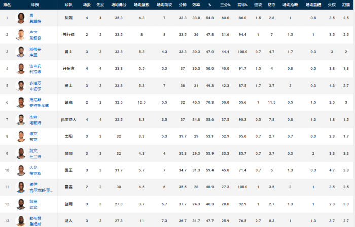 詹姆斯的个人数据依旧很抢眼,虽然马上就要38周岁了,但他依旧可以场均贡献27.3分,并列联盟第12位。按照目前的状态和节奏,詹姆斯如果保持健康和出勤率的话,加冕NBA历史得分王的问题很轻松。不过对于詹姆斯来说,除了个人数据和里程碑之外,球队的战绩以及冲击总冠军,才是最为关键的。上个赛季的詹姆斯也是数据出色,竞争得分王,但无奈球队排名西部第11名,附加赛的资格都没有获得。