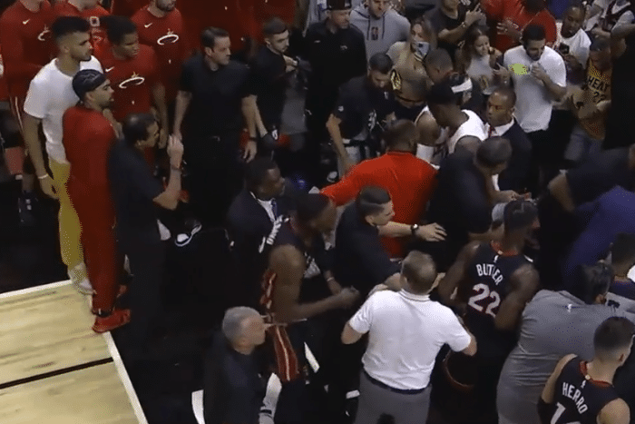 抱摔到观众席!NBA上演火爆冲突,两悍将直接被驱逐,场面太混乱
