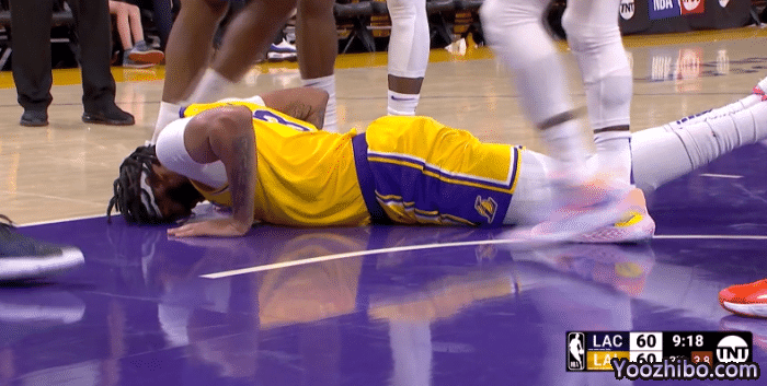 湖人惊险一幕:浓眉重摔倒地险受伤并接受治疗 小卡第一时间关心他