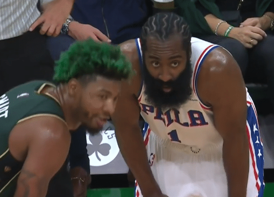哈登遭恶意犯规这一球引争议,哈登伸腿造犯规,落地踩到霍福德又造恶意犯规;76人获得三罚一掷的机会,哈登三罚全中,之后76人进攻未果,但费城疯狂反扑,一波9-0反超比分。