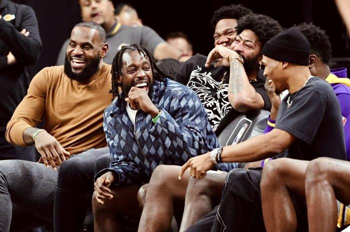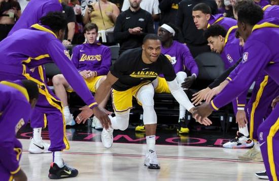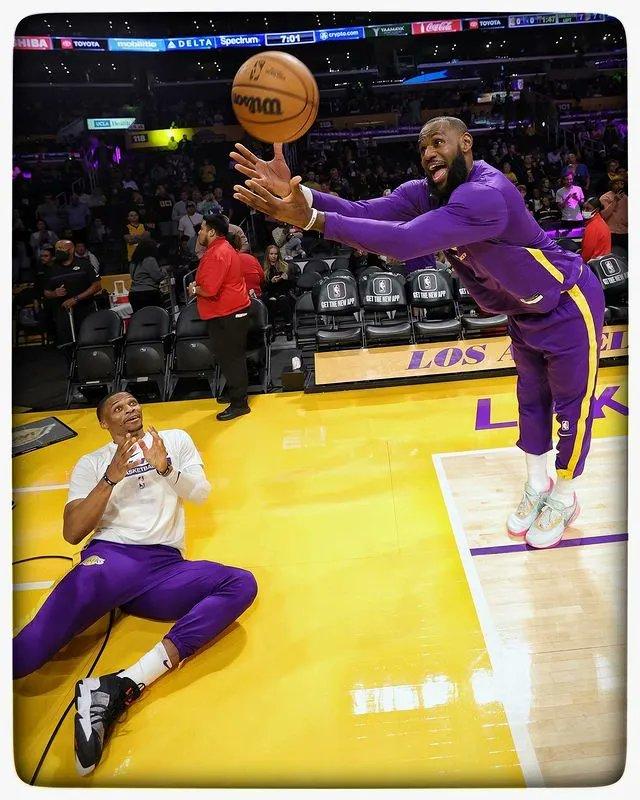 湖人主场对阵森林狼赛前,当湖人众球员围在一起加油时,威少站在远处,这一幕威少被质疑远离团队不合群;从另一角度可以看出,其实,赛前入场时,威少先后与浓眉、詹姆斯等队友击掌,更是和老詹一起做出秀肌肉的姿势;之后威少跑到替补席,脱掉球衣外面的T恤然后上场,和教练进行了一番交流。