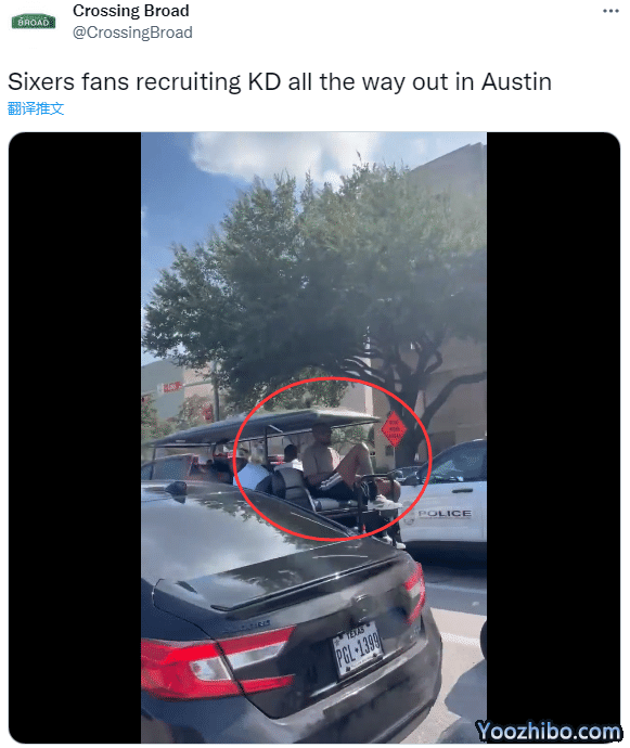 杜兰特在奥斯汀乘坐四轮电动车并且坐在后排,堵车期间,有76人球迷喊话招募他加盟费城;今夏杜兰特曾申请离队并且下达最后通牒逼宫球队,美媒更是曾报道哈登招募杜兰特,后者与76人相互有意,不过最终杜兰特哪儿都没去,而是留守篮网,继续带队冲击总冠军。