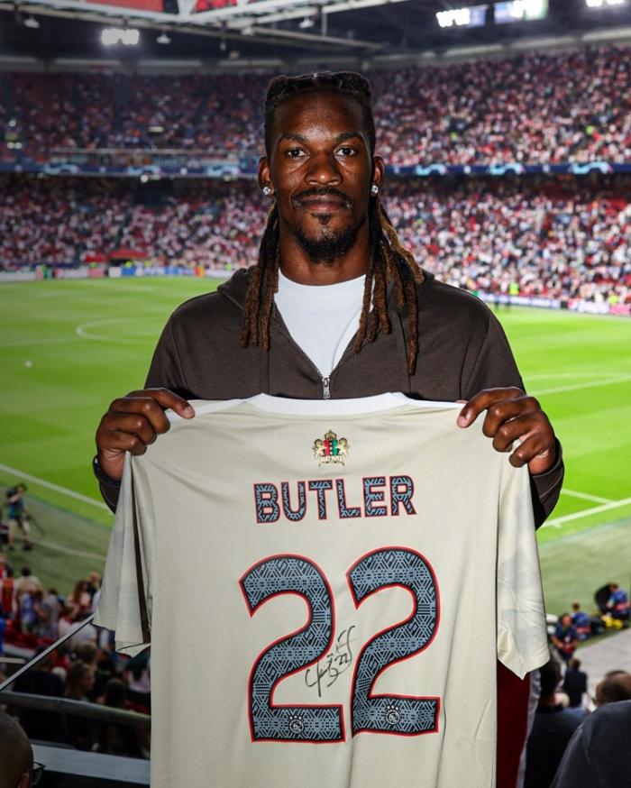 12、巴特勒现身阿贾克斯主场,观战欧冠获赠22号球衣,阿贾克斯官推写道:欢迎吉米-巴特勒的到来,很高兴你能来参与这个特别的夜晚,让我们用特别的礼物来庆祝这记‘三分’吧!