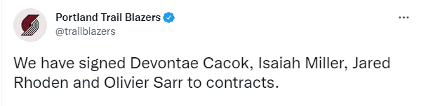 8、开拓者官宣签约奥利维尔-萨尔,双方签下一份Exhibit 10训练营合同。