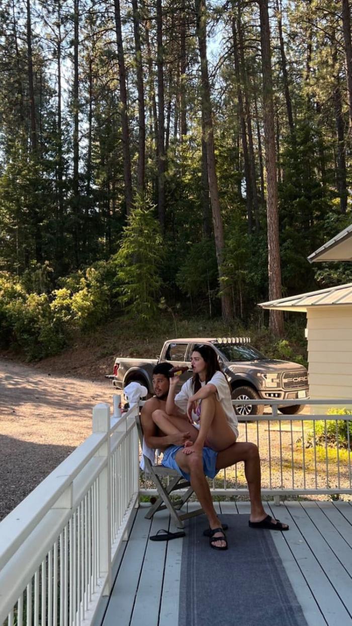 今年6月份,詹娜与布克曾闹矛盾短暂分手,不过没过多久,他俩就和好如初,今夏两人一起度假尽享生活,詹娜身穿比基尼坐在布克(赤膊仅穿一条大裤衩)大腿上的恩爱照更是引热议,如此画面不禁让人浮想联翩。