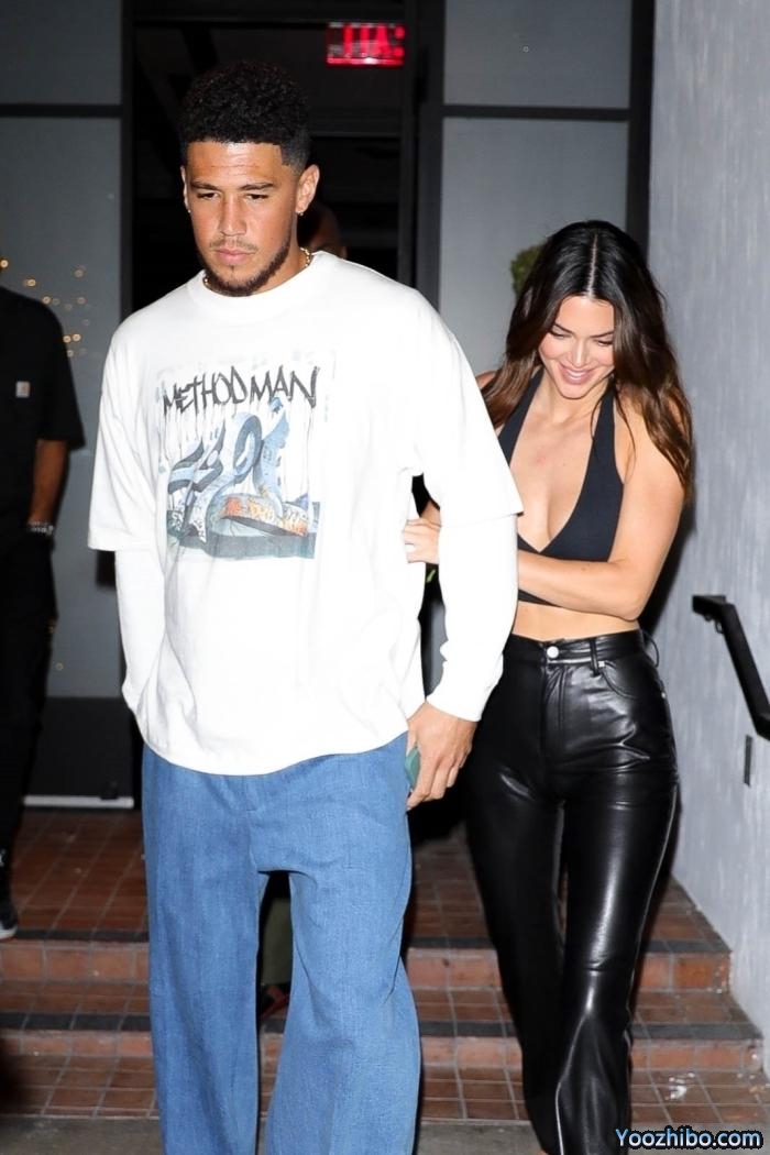 25岁的布克身穿白色卫衣和休闲牛仔裤,26岁詹娜身穿性感上衣,搭配皮裤出镜,两人在西好莱坞的Catch餐厅共进晚餐,离开时被抓拍到。