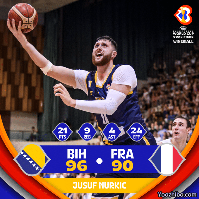 24直播网08月28日讯 ,男篮世预赛欧洲区,波黑双加时96-90击败法国,开拓者中锋努尔基奇表现出色,全场出战31分钟16投9中砍下21分9篮板3助攻2抢断1盖帽,残暴隔扣对手引热议,努尔基奇的表现完胜戈贝尔,两人都是犯满毕业。