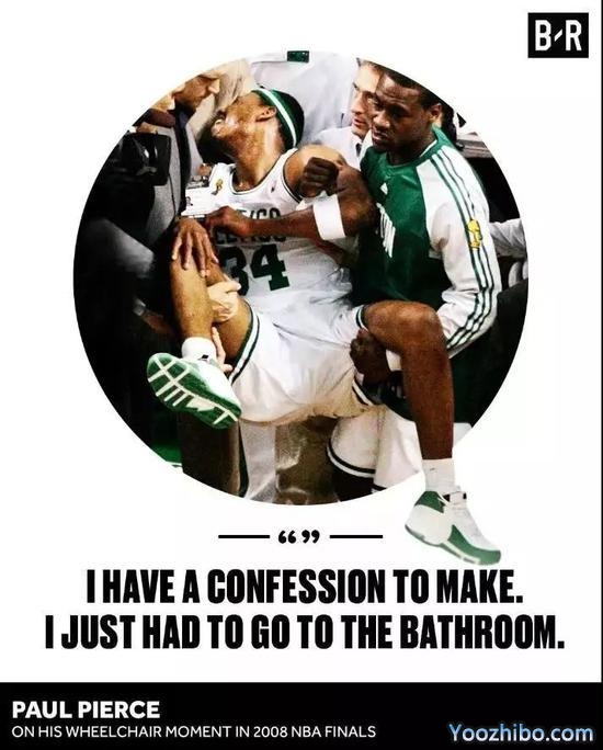 当年在NBA总决赛上,凯尔特人名宿皮尔斯曾拉稀,之后坐轮椅返回更衣室,本以为皮尔斯遭遇伤病,可没过多久皮尔斯就重返赛场;皮尔斯本人曾承认过这件事。