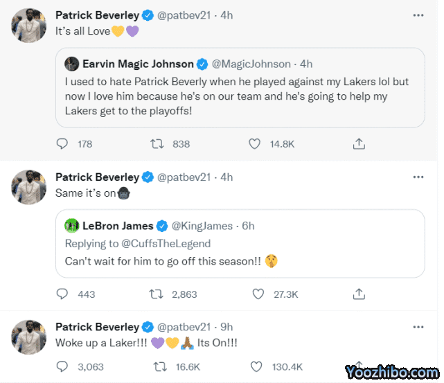贝弗利本人也连续发推,表达自己加盟湖人的心情。他先是发推写道:“醒来自己就成了一名湖人!开始行动!”